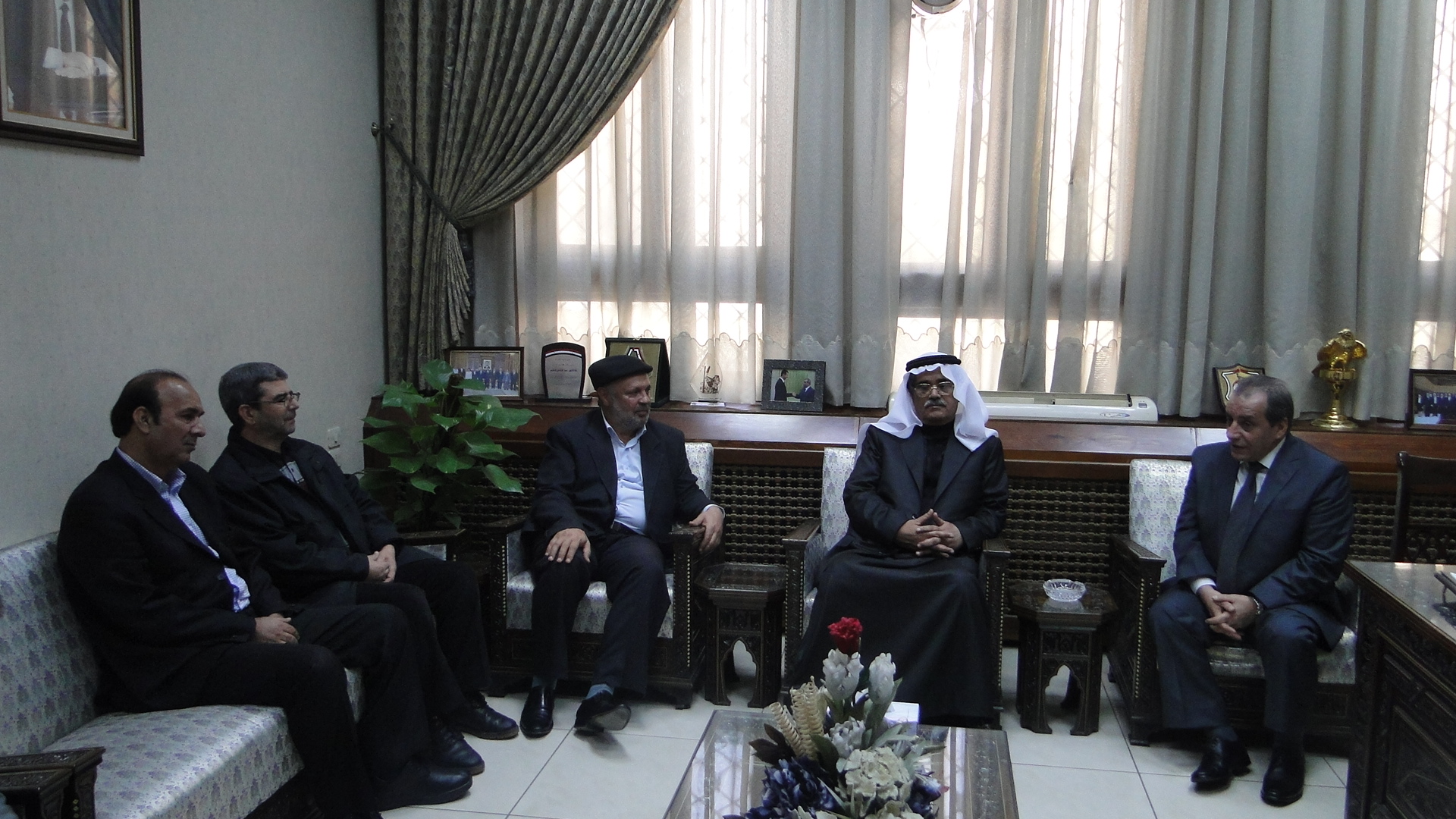 رئيس الاتحاد كرر الترحيب قائلاً نحن جبهة واحدة ومصير واحد وقدر واحد والحمد لله الذي وهبنا قادة عظام أمثال الرئيس الدكتور بشار الأسد وسماحة السيد حسن نصر الله القائدين الصحيحين والمسلمين الصحيحين.