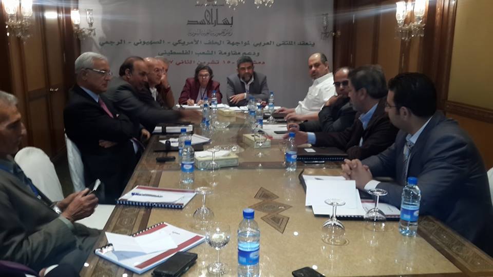 وكان الملتقى العربي لمواجهة الحلف الأمريكي الصهيوني الرجعي بدأ فعالياته أمس بمشاركة قوى وأحزاب وشخصيات وطنية من سورية ولبنان وفلسطين واليمن والأردن ومصر والعراق والجزائر والبحرين وموريتانيا.