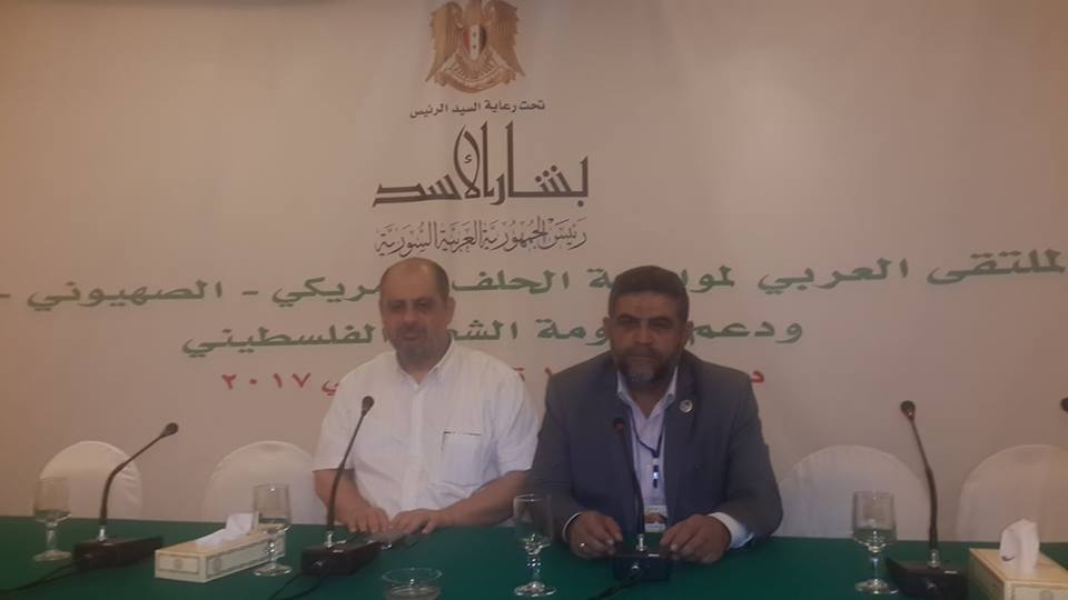 وكانت فعاليات الملتقى العربي لمواجهة الحلف الامريكي الصهيوني الرجعي ودعم مقاومة الشعب الفلسطيني تواصلت لليوم الثاني على التوالي في فندق الشام بدمشق عبر أربع ورشات عمل حول مواجهة التطبيع والإعلام والشباب والمنظمات والنقابات المهنية.