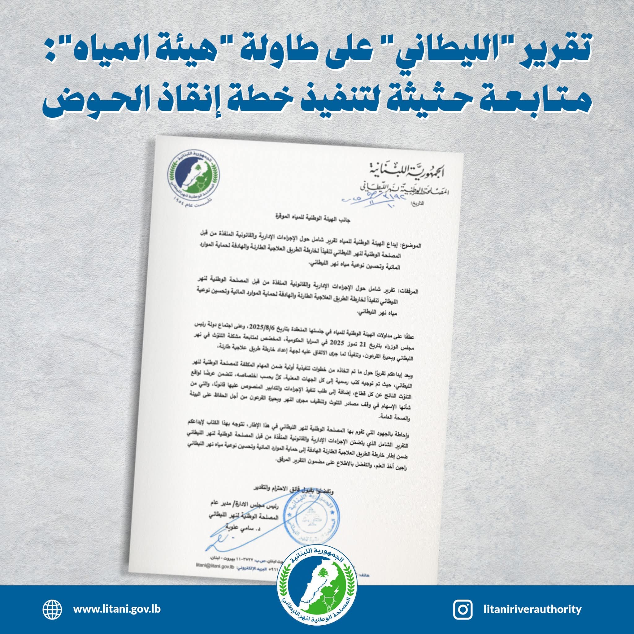 أعلنت المصلحة الوطنية لنهر الليطاني أنها "رفعت، في إطار تنفيذ خارطة الطريق العلاجية الطارئة الهادفة إلى حماية الموارد المائية وتحسين نوعية مياه النهر، إلى الهيئة الوطنية للمياه تقريرا شاملا يتضمن عرضا مفصلا للإجراءات الإدارية والقانونية التي نفذت في مختلف مراحل العمل، وذلك تطبيقا لتكليف رئيس مجلس الوزراء والتوصيات الصادرة عن الاجتماع الوزاري المخصص لمعالجة تلوث حوض الليطاني". وأشارت إلى أن "التقرير يستعرض أهم التدابير التي اتخذت على المستويين الإداري والقانوني، بما يشمل: متابعة تطبيق أحكام قانون المياه رقم 192/2020 وقانون حماية البيئة رقم 444/2002، إعداد وتنفيذ محاضر ضبط بالمخالفات الصناعية والزراعية والمنزلية، التنسيق مع الوزارات المعنية البيئة، الداخلية، الزراعة، الصناعة، والطاقة والمياه لتفعيل الرقابة على مصادر التلوث، واتخاذ الإجراءات اللازمة بحق المؤسسات غير الملتزمة المعايير البيئية، ومطالبة البلديات بتنفيذ موجباتها القانونية في حماية مجاري المياه". وذكرت أن "هذا التقرير يعد جزءا من الآلية الدورية للمتابعة والتقييم التي تعتمدها المصلحة، بالتعاون مع الهيئة الوطنية للمياه، بما يهدف إلى ضمان استدامة الموارد المائية في لبنان وتحقيق الإدارة المتكاملة لحوض نهر الليطاني". |