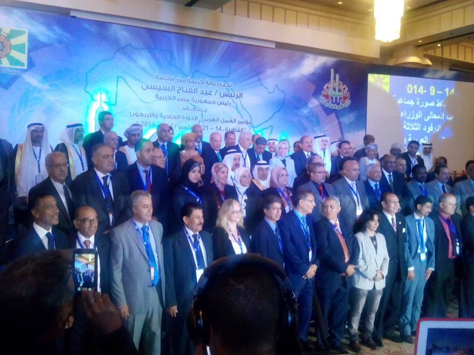 بإستضافة من جمهورية مصر العربية وتحت رعاية فخامة الرئيس عبد الفتاح السيسي انطلقت صباح الأحد 14-9-2014 فعاليات الدورة (41) لمؤتمر العمل العربي بالقاهرة بفندق انتركونتيننتال سيتى ستارز وتستمر خلال الفترة من 14 - 21 سبتمبر / أيلول 2014..فى بداية الجلسة الافتتاحية توجه نصار الربيعي، رئيس مجلس إدارة منظمة العمل العربية، وزير العمل العراقي، بالشكر لمصر قيادة وشعبا علي دعمهم لمنظمة العمل العربية، ولاستضافتهم مؤتمر العمل العربية في المرحلة الهامة التى تعيشها مصر... أكد في كلمته خلال الجلسة الافتتاحية لمؤتمر العمل العربي في دورته "41" الذي تستضيفه القاهرة لمدة أسبوع، أن مصر في ظل ما تمر به من تحديات إلا أنها قادرة علي العبور إلي بر الأمان لتظل قائدة الأمة العربية..وقال "نأمل أن نخرج بتوصيات وقرارات من المؤتمر تساهم في تعزيز العمل العربي المشترك، خصوصا في ظل التحديات التى تواجهها الأمة العربية في المرحلة الراهنة"، مشددا على أهمية الحوار بين الشركاء الأجتماعيين للتغلب علي كافة التحديات التى تواجه الأمة العربية.وأشاد "الربيعي" بالدور الذي قامت به منظمة العمل العربية تحت قيادة أحمد لقمان، المدير العام للمنظمة، لافتا إلي أن المنظمة أهتمت بالقضية الفلسطينية ومشاكل عمالها وكافة قضايا العمال في الوطن العربي..وأضاف "أري أن المنظمة حققت العديد من الإنجازات خلال الفترة الماضية بالتعاون بين أطراف العمل الثلاثة"..وتوجه محمد إبراهيم التويجري، المدير العام المساعد لمنظمة العمل العربية، بالشكر للرئيس عبد الفتاح السيسي، لرعايته مؤتمر العمل الدولي، مشيرا إلي أن الدول العربية تفتقد التوصيف الحقيقي لمعني الفقر والبطالة..وطالب في كلمته خلال الجلسة الافتتاحية لمؤتمر العمل العربي في دورته "41" الذي تستضيفه القاهرة لمدة أسبوع، بأهمية إعادة صياغة منظومة التعليم في الوطن العربي، ليكون هناك توافق بين مخرجات التعليم ومتطلبات سوق العمل...وشدد علي ضرورة تركيز التعليم علي متطلبات الوطن العربي، ووفقا لاحتياجات سوق العمل حتى نسطيع فعليا مواجهة البطالة التى تضرب الأمة العربية...وقال أحمد لقمان، المدير العام لمنظمة العمل العربية، "البطالة التي يعاني منها وطننا العربية أكبر من أن تواجهها وزارة بعينها بينما نحن في حاجة للتعاون فيما بين كافة الدول العربية للتصدي لتلك الأزمة"..وأضاف في كلمته خلال الجلسة الافتتاحية لمؤتمر العمل العربي في دورته "41" الذي تستضيفه القاهرة لمدة أسبوع، "لقد تبين لنا جميعا أن البطالة مجدبة لكافة المشكلات"، مشيرا إلي أن الازمة تفاقمت منذ 2010 وحتى الان بسبب تراجع الاستثمار وعجز الموازنة، حتى ارتفعت إلي 17 % منذ 2010، حتى 2013، بينما تمثل بطالة الشباب 28% من نسبة البطالة بشكل عام...وأكد "لقمان" ضرورة تقديم الدعم الكامل لوزارات العمل في الدول العربية، والتعاون مع الاتحادات العمالية من أجل الارتقاء بالتنمية ولحل كافة المشكلات التى يعاني منها الوطن العربي..وأضاف "التعاون العربي لم يعد طرفا للحديث الاعلامي ، بينما أصبح طلبا حتميا في ظل ما يتعرض له الوطن العربي من محاولات الهيمنة عليه، سواء من الداخل والخارج"، قائلا "نعول علي دور مصر في مساندة الدول العربية والعمل نحو تقدمها وأزدهارها"...وأكد على ضرورة التحرك في اتجاه واحد من أجل العمال العرب، وكذلك علي الجميع تهيئة المناخ الامن لعمال فلسطين في ظل ما يعانون من تحديات كبيرة..وايضا وفي افتتاح الدورة (41) لمؤتمر العمل العربي الذي تستضيفها القاهرة بحضور وزراء عمل وأصحاب أعمال وممثلي العمال في 21 دولة عربية، نقلت الدكتورة ناهد عشرى وزيرة القوى العاملة والهجرة ورئيسة المؤتمر ، تحيات الرئيس عبد الفتاح السيسي راعى المؤتمر..كما نقلت تحيات شعب مصر الحريص دائماً على احتضان وخدمة كل ما يحقق نفعاً لأمته العربية وكل ما يعزز التضامن بين شعوبها ودولها...ونقل تمنيات الرئيس وشعب مصر جميعاً أن يكون المؤتمر لبنة من لبنات البناء والانطلاق الإيجابى لعمل منظمة ال