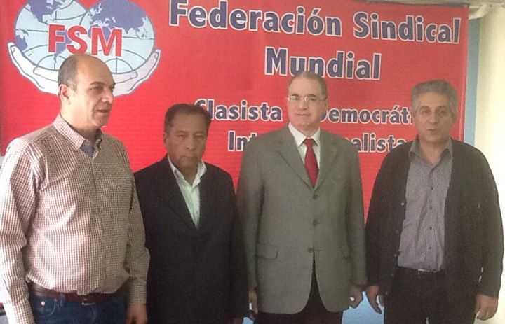 فالنتينو باتشيو ، عضو الأمانة العامة من ( البيرو ) ، والسيد محمد اقنيبي عضو الأمانة العامة من ( فلسطين ) ، والسيد الياس بالتاس مدير دائرة أمريكا اللاتينية بالاتحاد . وخلال اللقاء الذى حدث الاثنين 15 كانون الاول / ديسمبر ،رحب السيد مافريكوس في بداية اللقاء بضيف الاتحاد العالمي للنقابات ، وتمني له طيب الإقامة في اليونان ، ودعاه الى ان يشعر انه في بيته وبين أهله وإخوته ، وأكد على عمق العلاقات الأخوية وعلاقات التضامن التي تربط الاتحادين منذ ان تأسس الاتحاد الدولي لنقابات العمال العرب في 24 مارس / آذار عام 1956 ، وظلت هذه العلاقات قوية ومتماسكة ومتينة رغم الظروف والتقلبات التي شهدتها الساحة العربية والدولية منذ سقوط جذار برلين وانهيار الاتحاد السوفييتي . وأشار الى ان الاتحادين يمتلكان نفس المبادئ ويناضلان من اجل نفس القيم في الدفاع عن حقوق العمال والتضامن الأممي ، واحترام خيارات الشعوب وحقها في تقرير مصيرها . وجدد الموقف التضامني للاتحاد العالمي للنقابات مع حقوق العمال العرب رجالا ونساء ، والوقوف الى جانب الشعوب العربية التي تتعرض لمؤامرة إمبريالية شرسة مثل فلسطين وسوريا والعراق ولبنان وبلدان اخرى في المنطقة . وأشار السيد مافريكوس في كلمته الى مساعي الاتحاد الدولي للنقابات ITUC للتدخل في الشؤون النقابية العربية ، ودان محاولاته تفثيت الحركة النقابية العربية ، والعمل على انشاء منظمة بديلة للاتحاد الدولي لنقابات العمال العرب ، في محاولة مفضوحة لتقسيم النقابات العربية وخلق الفتن فيما بينها لاضعافها وتشثيت جهودها تحت شعارات براقة وهي عبارة عن كلمات حق يراد بها باطل . وقال السيد مافريكوس في كلمته ان الاتحاد العالمي للنقابات سوف يستمر في دعم الاتحاد الدولي لنقابات العمال العرب وقيادته ونقاباته الأعضاء ، وأضاف نحن ندرك ان الوضع العربي الراهن يبعث على القلق ولكن علينا ان لا نستسلم لمشاريع الإمبريالية القديمة التي تحيا اليوم وتتجدد بأشكال وصور مختلفة . وعبر عن قلق الاتحاد العالمي للنقابات من الحالة المزرية وتقصير المجتمع الدولي في معالجة مشاكل المهجرين بسبب الأوضاع العسكرية في سوريا والعراق وليبيا ، وقال نحن تؤلمنا المأساة التي يتعرض لها ملايين المهجرين من أوطانهم ، ولا نري ان الحل يكمن في توزيع المساعدات الانسانية عليهم على أهميتها ، وإنما الحل الحقيقي الذي علينا جميعا ان نضغط باتجاهه هو عودة هؤلاء المهجرين الى بلادهم والى ديارهم والعمل على توفير الامن وفرص العمل اللائق لهم وتوفير العناية الصحية والتعليم لأولادهم . وأكد ان هناك واجب علينا يلزمنا بالتضامن مع كافة القضايا العربية ، وأعرب السيد مافريكوس عن تمنياته بالنجاح الباهر للمؤتمر العام القادم للاتحاد الدولي لنقابات العمال العرب ، وان يخرج بقرارات تخدم مصالح العمال العرب ضمن هذه الظروف الصعبة والتحديات الكبيرة التي تعيشها المنطقة العربية . وتحدث السيد رجب معتوق الامين العام للاتحاد الدولي لنقابات العمال العرب من جهته مثنيا على حفاوة الاستقبال وكرم الضيافة آلت يحظى بهما من قبل قيادة الاتحاد العالمي للنقابات وكوادره منذ ان حطت قدما مطار اثينا ، وثمن عاليا كلمة السيد مافريكوس ومشاعره النبيلة تجاه قضايا الأمة العربية ورفضه وإدانته لما تتعرض له من ارهاب من الجماعات المتطرفة والمتشددة المسلحة والمدعومة من الكيان الصهيوني ومن حكومة الولايات المتحدة الامريكية وبعض الحكومات الغربية ، وأكد من جانبه على حرص اتحاده على مر العقود الماضية ان تظل علاقاته بالاتحاد العالمي للنقابات علاقات متميزة وقوية ، واتفق مع السيد ما فريكوس ان وشائج العلاقات الثنائية بين المنظمتين ترتكز على أسس مثينة ، وتربطهما قيم وأهداف ومبادئ نضالية واحدة . وحيا معتوق مواقف الاتحاد العالمي للنقابات التضامنية مع عمال وشعوب المنطقة العربية وخاصة ما يجري في فلسطين وسوريا ولبنان والعراق وليبيا وغيرها من البلدان ، واهتمامه بالتواصل مع قيادا