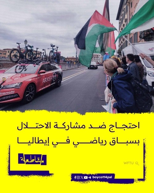 شهدت مدينة بيزا الإيطالية احتجاجات نظمها عمال نقابة القاعديين خلال فعاليات سباق "جيرو دي إيطاليا"، حيث رفع المشاركون الأعلام الفلسطينية ونددوا بما وصفوه بتواطؤ الاتحاد الأوروبي مع الاحتلال الإسرائيلي في تنفيذ "الحل النهائي" ضد الشعب الفلسطيني. وجاءت هذه الاحتجاجات في ذكرى النكبة، وعبّرت عن تضامن العمال مع القضية الفلسطينية، كما انضموا إلى تنسيقية "مقاطعة إسرائيل" في مظاهرة طالبت بإدانة المواقف الرسمية للحكومة الإيطالية، التي يتهمها المحتجون بدعم سباق التسلح الأوروبي وتعزيز الاقتصاد الإسرائيلي على حساب حقوق الإنسان. كما أعرب المتظاهرون عن رفضهم لمشاركة إسرائيل في السباق الرياضي، معتبرين ذلك شكلاً من أشكال "تبييض الانتهاكات" بحق الفلسطينيين عبر الرياضة. |