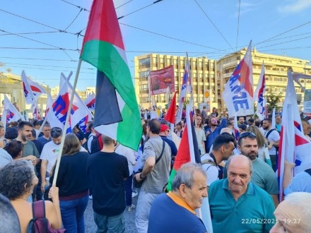 نظّم اتحاد نقابات العمال اليوناني "البامة"، إلى جانب عدد من الحركات الطلابية والنقابات والمنظمات الجماهيرية في اليونان، وقفة احتجاجية وفعاليات تضامنية أمام سفارة الاحتلال الإسرائيلي في العاصمة أثينا، تعبيراً عن دعمهم الثابت للشعب الفلسطيني وقضيته العادلة. وأكد المشاركون في الفعاليات رفضهم لجرائم الاحتلال ودعمهم لنضال الشعب الفلسطيني من أجل الحرية والاستقلال. |
