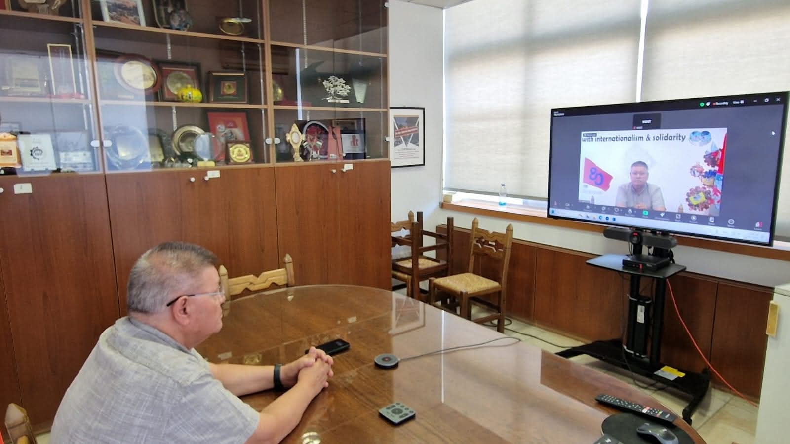 خاطب الأمين العام للاتحاد العالمي للنقابات (WFTU)، بامبيس كيريتسيس، عن بُعد المؤتمر الوطني للتنظيم والخدمات والمفاوضة الجماعية الذي تنظمه نقابة العاملين في التعليم والصحة والجامعات (NEHAWU) بجنوب إفريقيا، يوم 27 آب 2025. وتناول كيريتسيس في كلمته الأوضاع السائدة عالميًا، بالإضافة إلى أولويات الاتحاد ومواقفه من القضايا النقابية المطروحة على جدول أعمال المؤتمر. كما أشار الأمين العام إلى نضالات العمال في جنوب إفريقيا، مؤكدًا الدعم الثابت الذي يقدمه الاتحاد العالمي للنقابات، ومجدّدًا التأكيد على أن الحركة النقابية في جنوب إفريقيا يمكنها دائمًا الاعتماد على التضامن والمساندة من جانب الاتحاد. خاص موقع اتحاد الوفاء |