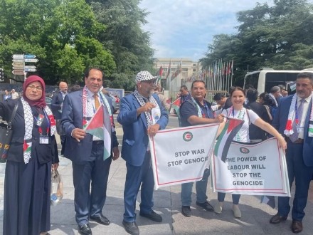 ضمن فعاليات الدورة 113 لمؤتمر العمل الدولي المنعقد في جنيف، شارك رئيس اتحاد النهضة العمالية النقابي محمد إبراهيم فى وقفة تضامنية نظمها اتحاد حقيش واتحاد ميسان بمشاركة وفود عربية، دعماً لحقوق أبناء شعبنا الفلسطيني في مواجهة جرائم الاحتلال المتمادية، وحرب الإبادة التي يشنها على أهلنا داخل الأرض المحتلة. وتصنف الفعالية من ضمن خطوات تهدف إلى الانتصار لفلسطين لا سيما حقوق عمالها. وأدلى رئيس اتحاد النهضة العمالية النقابي محمد إبراهيم بتصريح أكد فيه حرص الاتحاد على تنفيذ القرارين الصادرين عن مؤتمر العمل الدولي في العامين 1974 و1980، وهما يسلطان الضوء على الانتهاكات العنصرية التي توغل فيها سلطات الاحتلال بحق العمال من أبناء شعبنا الفلسطيني، وكيفية مواجهتها. كما عرض إبراهيم لمتابعة اتحاد النهضة العمالية لتفاصيل تنظيم "الملتقى الدولي للتضامن مع عمال وشعب فلسطين والأراضي العربية المحتلة الأخرى"، حيث يهدف الملتقى إلى توسيع مساحة الانتصار لفلسطين والتضامن معها على أوسع نطاق دولي. وأشار إبراهيم إلى قيام اتحاد النهضة العمالية بواجبه في دعم "البرنامج المعزز للتعاون الإنمائي لمصلحة الأراضي العربية المحتلة" و"الصندوق الفلسطيني للتشغيل". وختم إبراهيم بالتأكيد على ضرورة تنفيذ قرارات الدورة 51 لمؤتمر العمل العربي المنعقد هذا العام، والقرارات المتخذة في الدورتين 101 و102 لمجلس إدارة منظمة العمل العربية المتعلقة بالعمال من أبناء شعبنا الفلسطيني. |